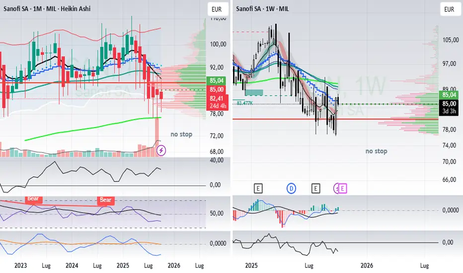 long 1SAN da 85,04 no stop, presi 8pezzi per buona reazione sul settimanale e medie in compressione sul mensile anticipando ripresa del poc con uscita dai supporti, buoni numeri e comunque difensivo lento e progressivo.