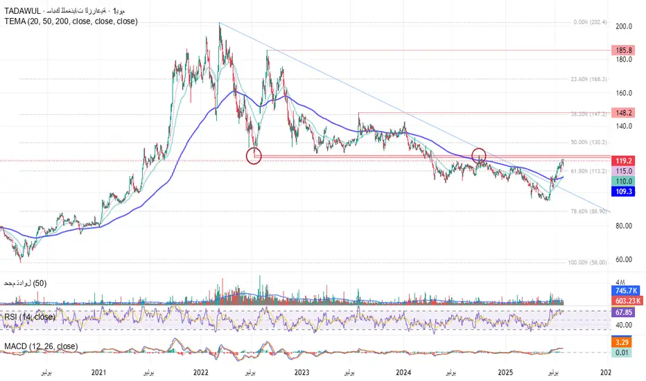 اختراق خط اتجاه هابط امتد لأكثر من سنتين منذ 7 مارس 2022، ما يشير إلى تحوّل هيكلي إيجابي على المدى الطويل.