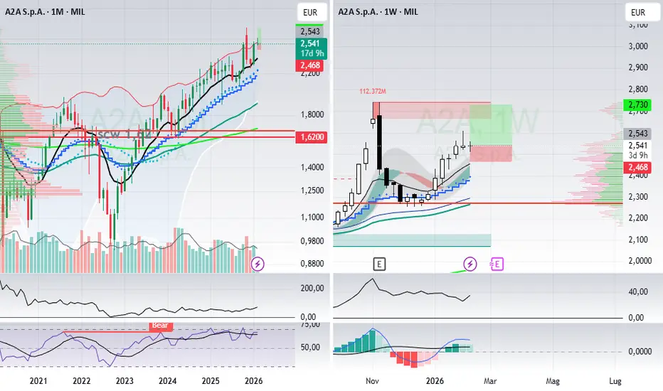 long marg.A2A da 2,543 stop 2,468 target 2,73, aperti 400pezzi per rischio di circa 35-40eur e gain potenziale di circa il doppio rettificato dagli interessi di prestito.