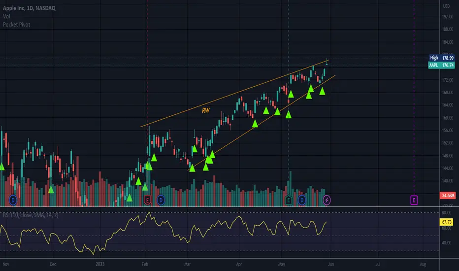 Big move up with possible Rising wedge noted that is not valid until the bottom trendline is broken.