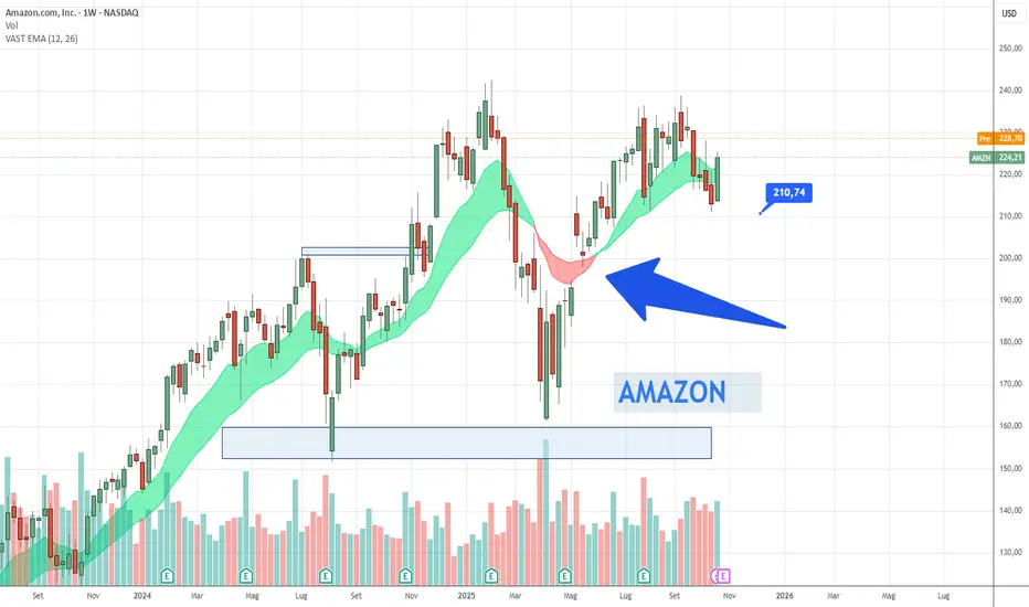AMAZON figura in una zona laterale che potrebbe essere distributiva. Secondo me sarà possibile rivederla verso i prezzi di 190-200 dollari per determinare una zona di shock.