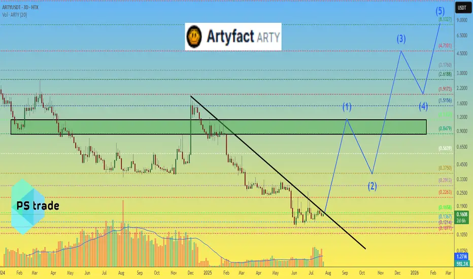 🕯 If we look at the #ArtyUSDT chart, we can see that the price is pinned to the trend line, and we just need to wait for an impulsive and volumetric breakout.