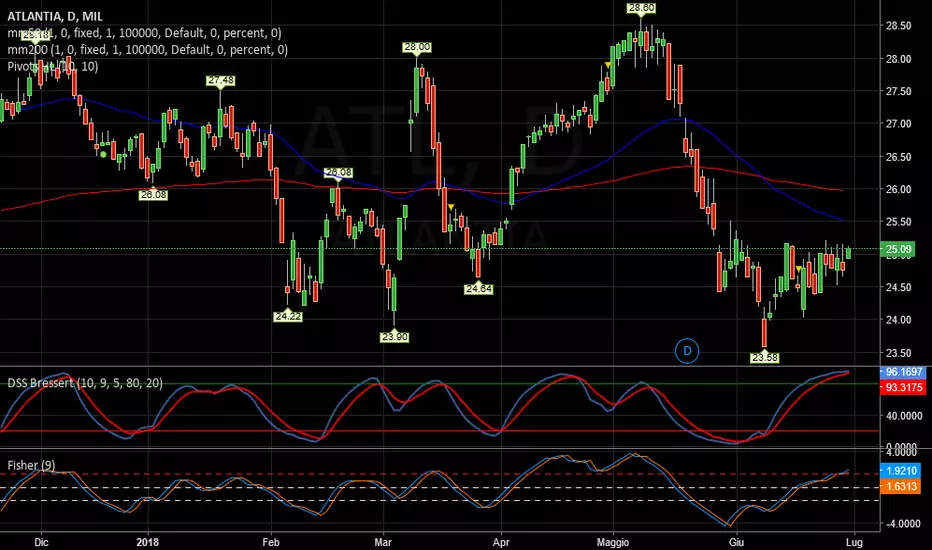 Punti critici : 26,62// 26,89// 25,49// 25,53// 26,67// 28,28// 24,78// /Pivot: LONG se > 25,12/ SELL se < 24,38/ TP 1= 25,55/TP2= 26,02/TP3= 26,98// SHORT TP 1= 23,95/TP2= 23,48/TP3= 22,52 /
