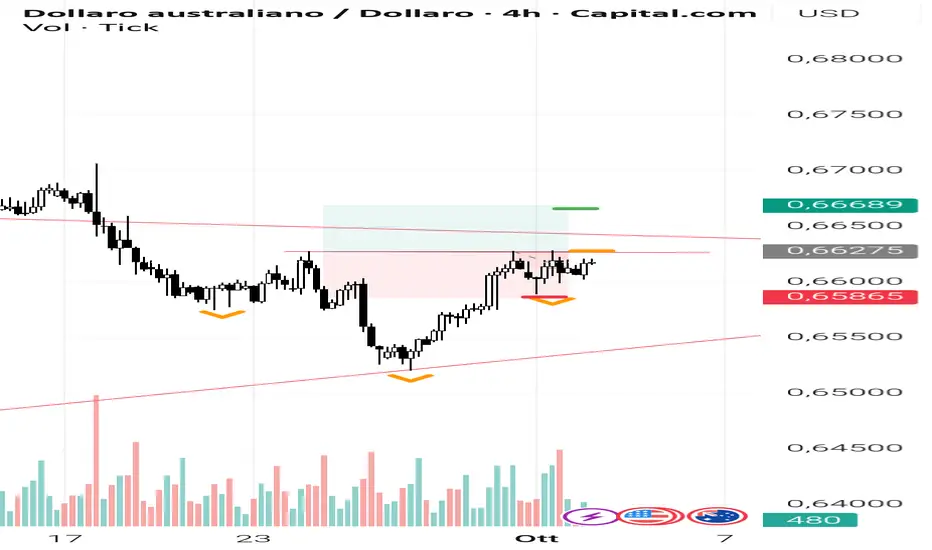 Proviamo a catturare il possibile proseguimento del movimento long sfruttando lo spaccio che potrebbe arrivare dal superamento del precedente massimo a 0,66275