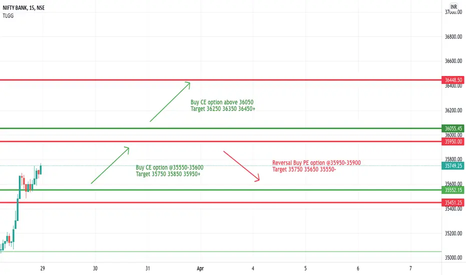 Today will be gap up opening in banknifty. After opening if banknifty starts trading above 36050 level then expected further upside rally of 400-500+ points. Any downside only possible below 35950 level. Downside 35550 will act as an important and strong support for today's session.