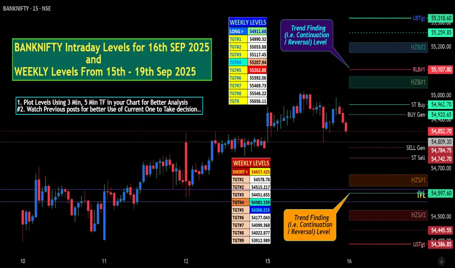 BANKNIFTY Intraday Levels for 16th SEP 2025 &
