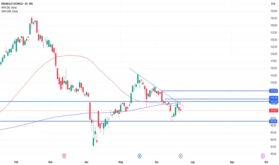 Il titolo continua a muoversi nel trading range compreso tra €96,54 e €103,40 e al momento sembra trovare resistenza sulla mm50 e mm200 rispettivamente €102,59 e €103,04.