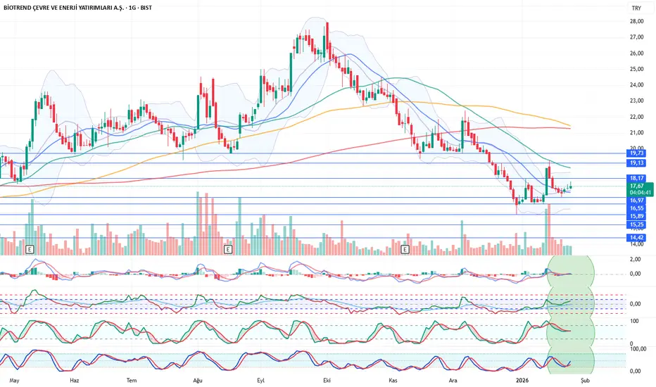 Günlük teknik indikatörler Pozitif. Hisse 21 günlük fiyat ortalaması (17,29) üzerinde fiyatlamaya devam ediyor. İndikatörlerin pozitife dönmesiyle olumlu hava oluşmaya başladı. Destek gelir ise 18,17 direncini yukarı kırması ve daha önce ulaştığı 19,13 direnç seviyesini tekrar test edebileceğini düşünüyoruz.
