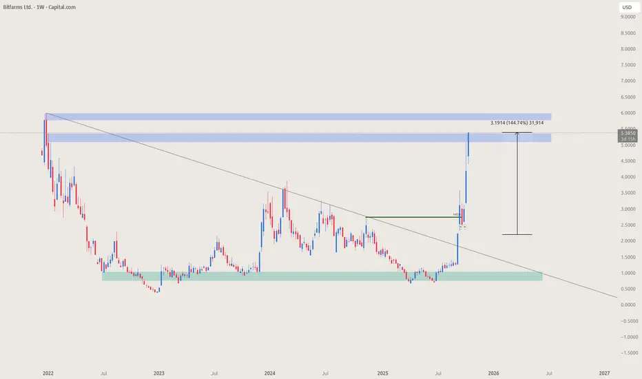 This is a followup on the Bitfarm stock, which is nearing the triangle target and made significant gains