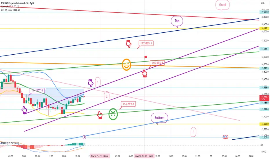 Those who entered long yesterday at 114.5K should follow the same stop-loss order today when the green support line breaks.