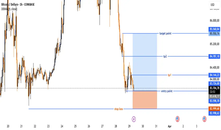 🔹 Se il prezzo scende sotto 82.998$, si attiva lo stop loss per ridurre le perdite ⛔