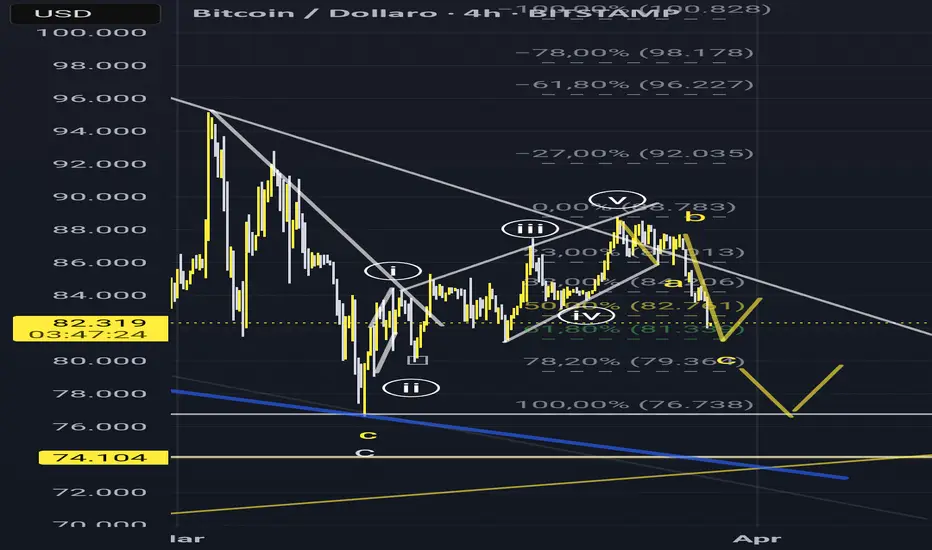 Btc dalla mia previsione ha mosso dai 87600 ai 82000, siamo molto vicini alla zona di interesse 61% (81000$) Fibonacci e al 100% (77000$)