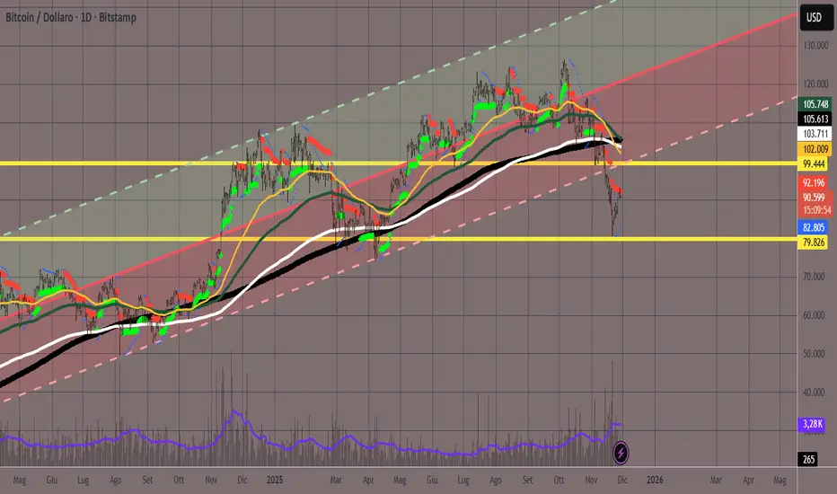 La trendline rappresentata è stata rotta al ribasso e adesso stiamo provando a recuperare, solo un recupero dei 104k usd annullerebbe la view ribassista.