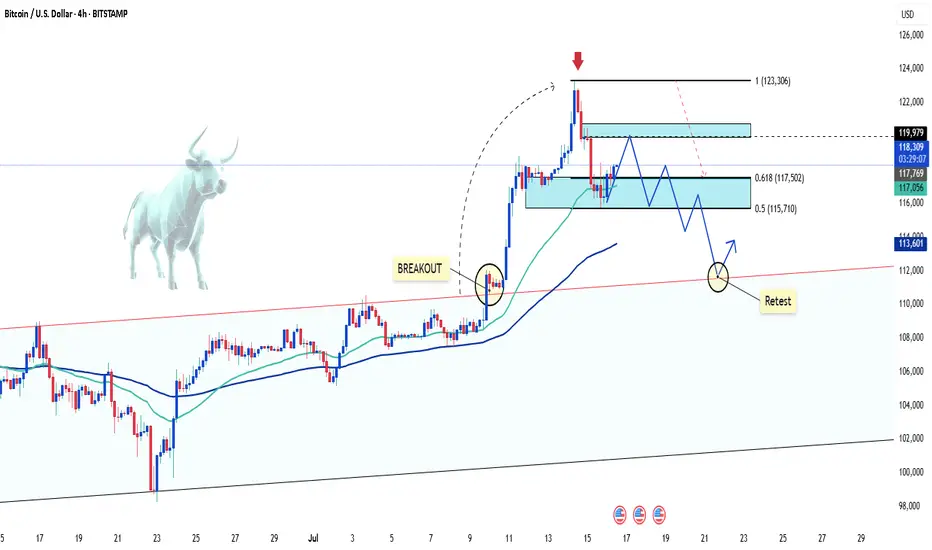 After a strong surge above the 122,500 USD zone, BTC/USD has started to experience a slight pullback. This is completely normal and necessary for Bitcoin to gain new momentum.