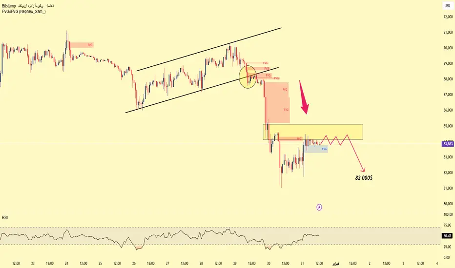 السيناريو المُفضّل للأسبوع القادم: استمرار مقاومة السعر عند المنطقة الحالية ← انخفاض إلى 82 ألفًا لإيجاد طلب جديد.