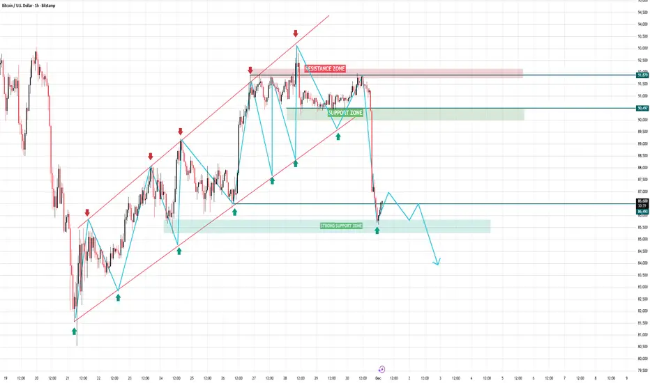 - A major Support Zone at $85,000–$86,000 — recently tested and respected.