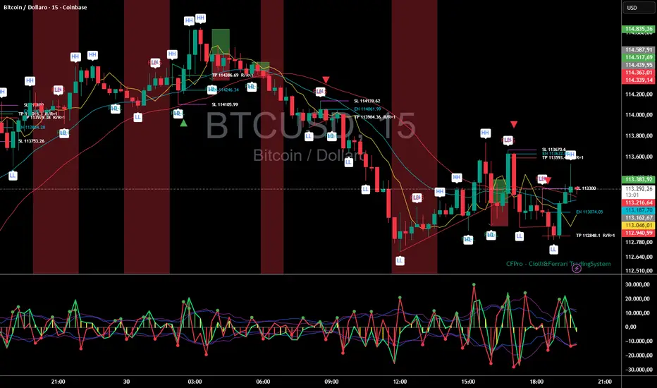 Bitcoin m15 , resoconto giornaliero delle operazioni generate dal C&F PRO :