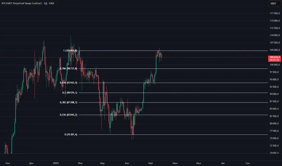 - 0.618 – "золотой" уровень, сильная зона для разворота или продолжения тренда.