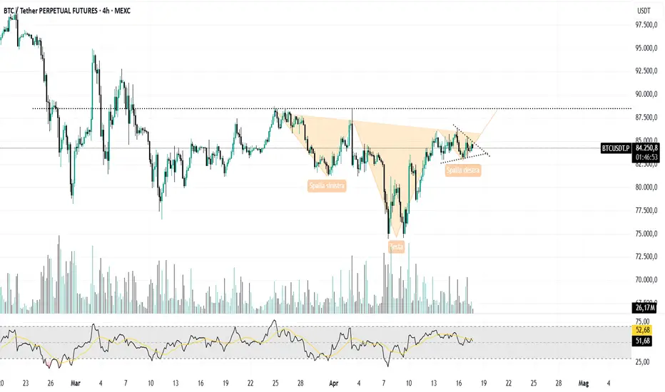 Come potete vedere, BTC sta creando un pattern testa a testa invertito.