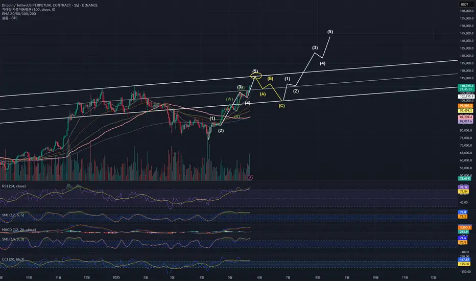 105.8k 까지 올라온게 3파동으로 보이고 지금 현재 5파동 진행중으로 보고 있습니다!