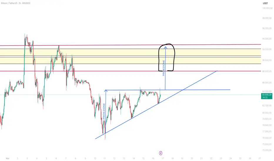 Mi aspetto una rottura rialzista di btc con target della proiezione che rispecchia dei livlli dei quali avevo segnato come importanti in h1