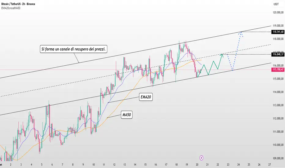 Bitcoin si muove in un canale di prezzo ascendente, con EMA20/MA50 che continua a svolgere un importante ruolo di supporto. Dopo una correzione vicino al fondo del canale, il prezzo è rimbalzato intorno a 116.000, dimostrando che il potere d'acquisto è ancora presente e stabile.
