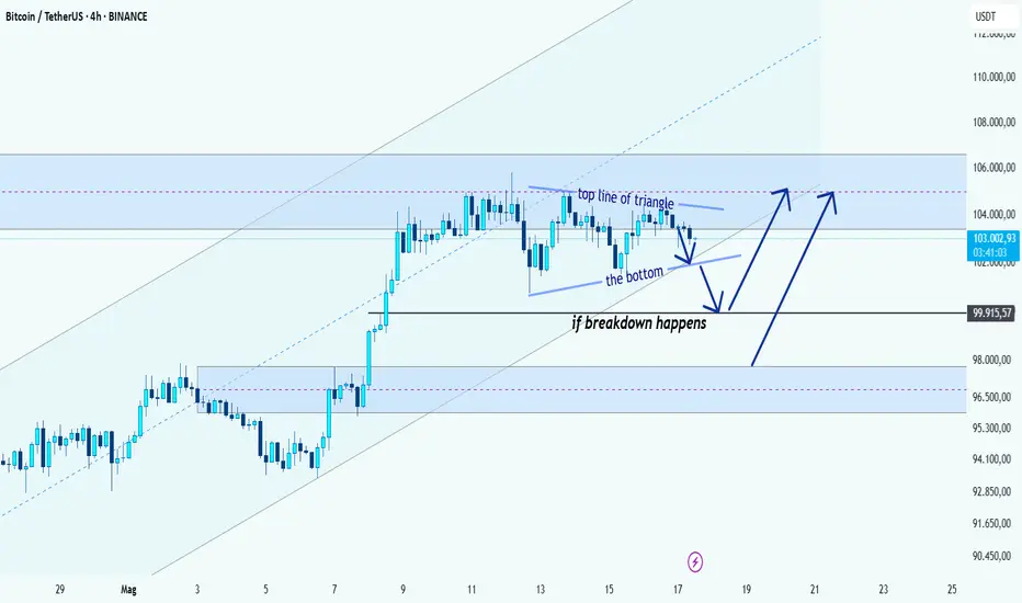 Se BTC supera la parte superiore del triangolo, potremmo assistere a un brusco movimento verso la zona di resistenza a 106.000 dollari e potenzialmente oltre.