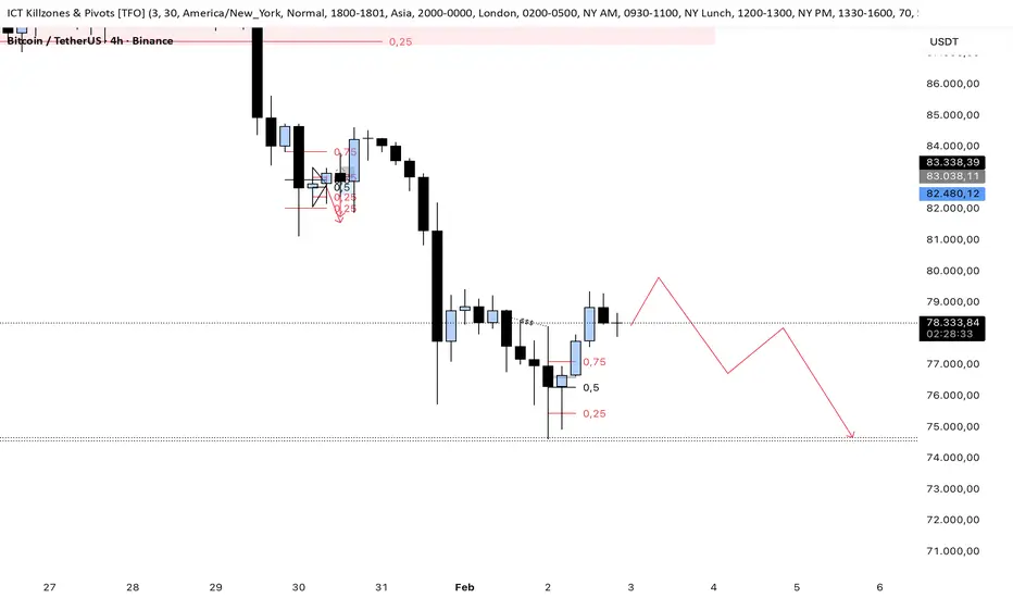 Dal punto di vista della market structure, un ritorno sotto i livelli chiave precedenti confermerebbe uno shift ribassista, con un possibile target verso le zone di liquidità lasciate più in basso. In sintesi, lo scenario più probabile resta uno sweep degli highs seguito da una fase di distribuzione, aprendo la strada a una nuova fase di debolezza del BTC nel breve termine 🔻📊.