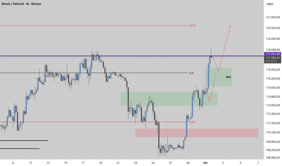📈 Il prezzo del BTC ha raggiunto il livello 0,5 di FIBO come previsto nell’analisi di ieri.