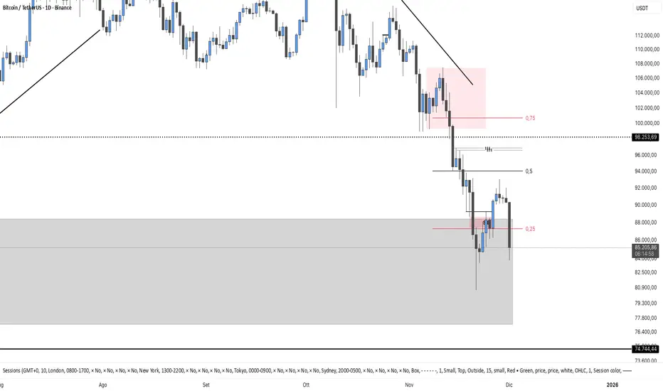 Tuttavia, la forte volatilità ribassista mostra che il mercato mantiene al momento una tendenza di fondo ribassista, e il prezzo potrebbe scendere sotto la soglia degli 80'000 $.