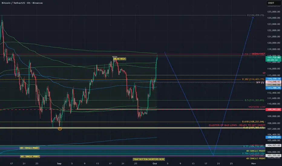 - ✅ Sweep the Weak High (mid-Sept) into 117.8–118.8k (imbalance + AVWAP band confluence).