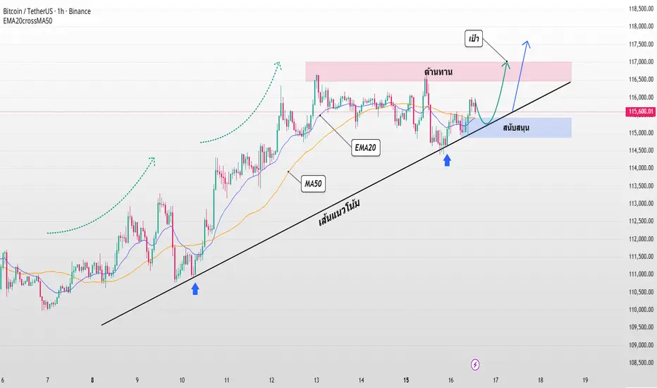 Bitcoin ยังคงเคลื่อนไหวเหนือเส้นแนวโน้มขาขึ้นระยะสั้น โดยมีเส้น EMA20 และ MA50 ให้การสนับสนุนที่ดีบริเวณ 115,500