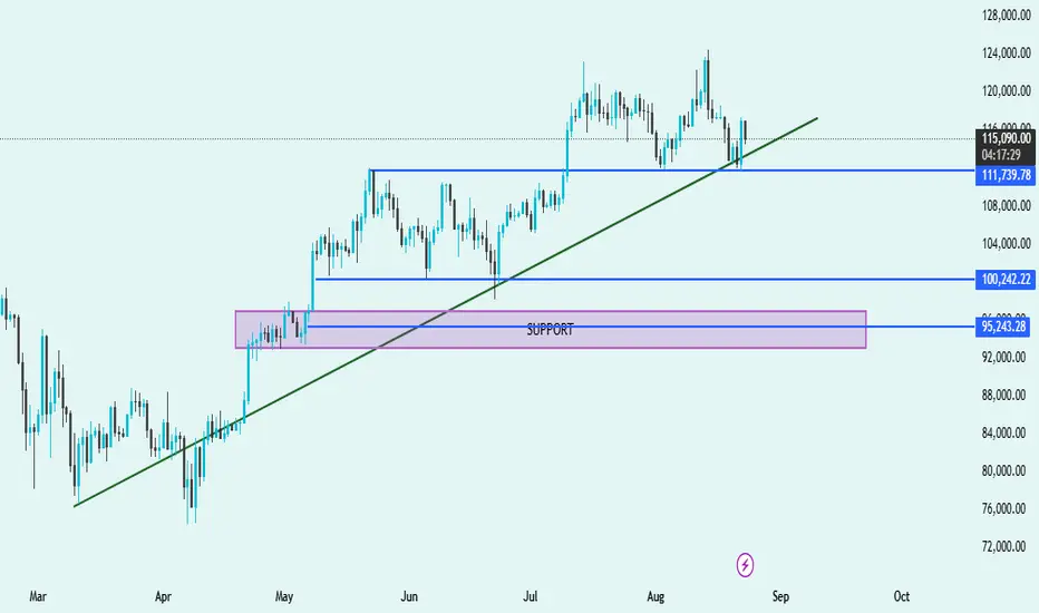 ⚠️ If the price breaks below $111,739 and the trendline, expect a deeper pullback toward $100,242 or even the major demand zone $95,243.