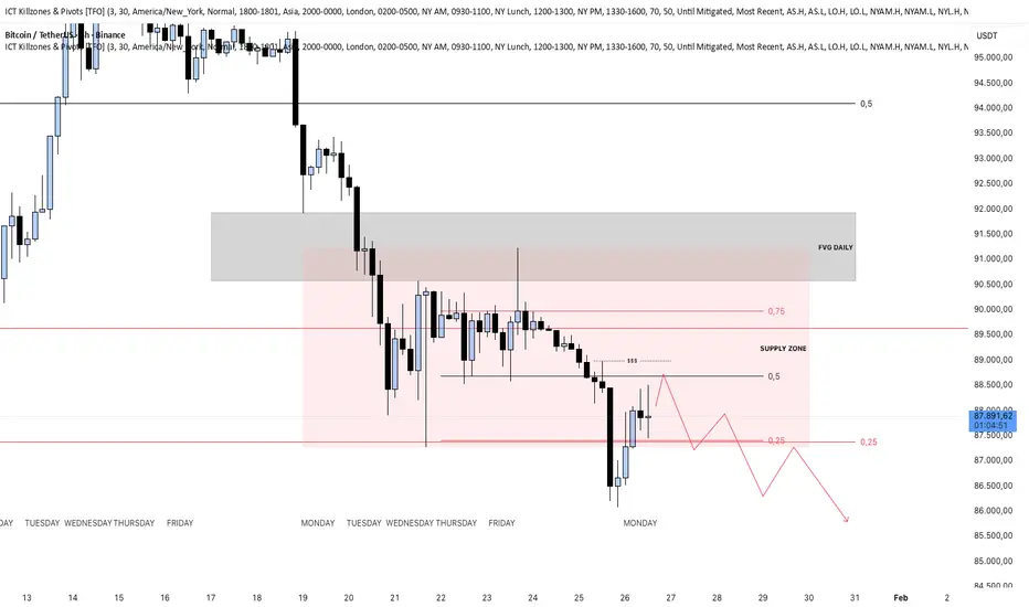 Consiglio di SHORTARE il BTC nel momento in cui il prezzo rompe nuovamente al ribasso lo 0,25 di FIBO.