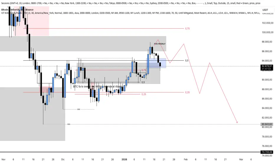 Si nota che il prezzo del BTC rimbalza al ribasso a livello della FVG WEEKLY, il che dimostra che questa FVG è potente.