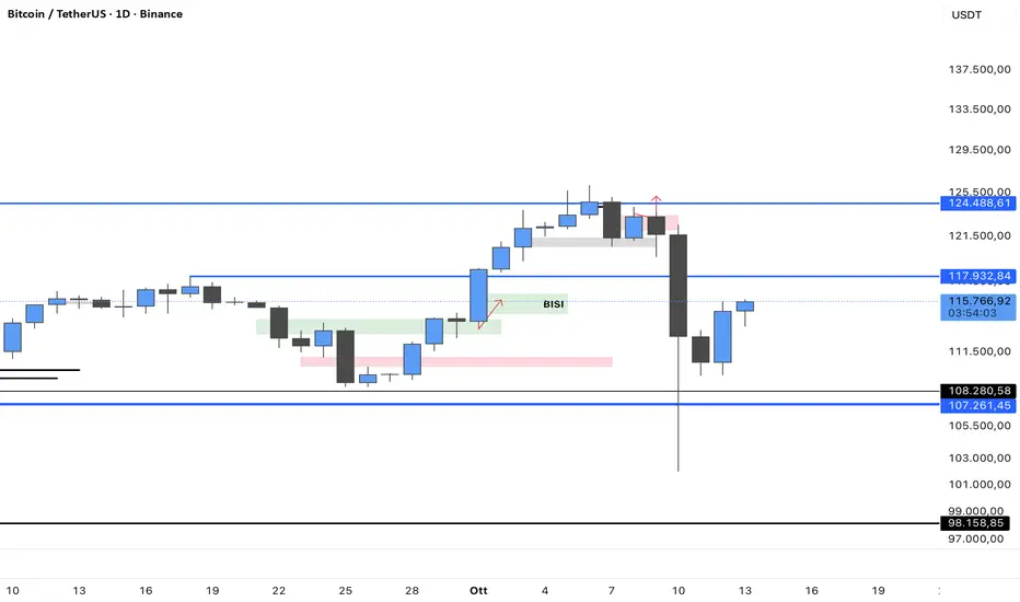 Durante la giornata odierna, il prezzo del BTC ha mostrato un leggero rimbalzo dopo la forte caduta dei giorni scorsi, segno di una fase di consolidamento in corso. 📊