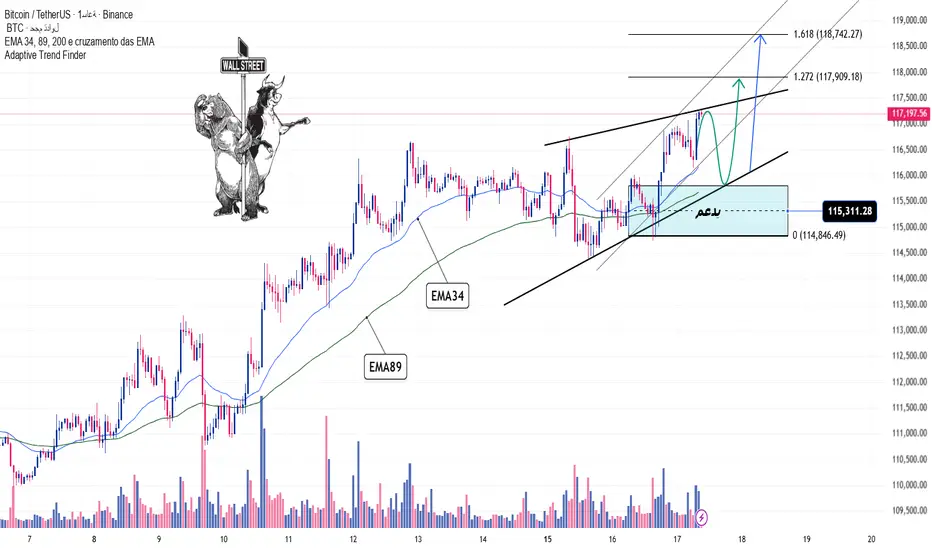 🔹 مجال الدعم المهم: 115.3K (تزامنت مع EMA Cluster و Trendline). سيكون هذا دفاعًا رئيسيًا عن الاتجاه الصعودي.