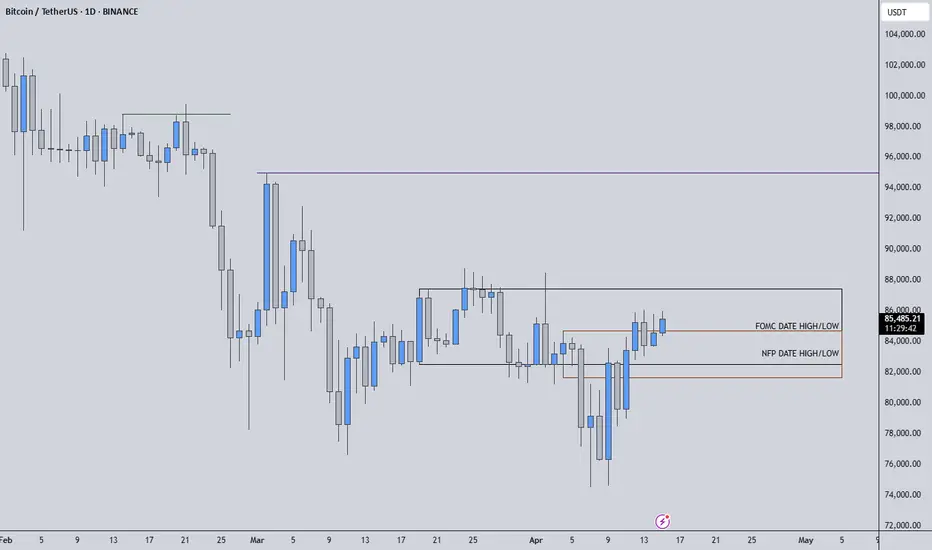 This current structure on Bitcoin is giving us a beautiful narrative rooted in macro timing: we've regained the NFP day levels, and now we’re trading right inside the highs and lows of the FOMC date—a zone that historically acts as a decision-making pivot for the market.