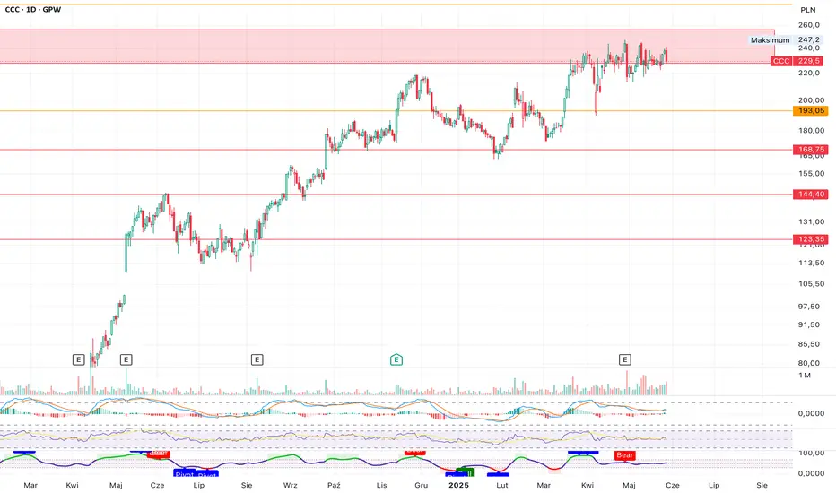 CCC znajduje się w kluczowej strefie decyzyjnej. Obecna konsolidacja jest ruchem wyczekiwania. Jeśli cena przebije opór przy 247 zł, możemy spodziewać się przyspieszenia wzrostów. Jeśli natomiast dojdzie do przebicia wsparcia i wyjścia dołem ze strefy 225–229 zł, rynek może dynamicznie zejść w stronę 193 zł, a nawet niżej. Wszystko rozstrzygnie się w najbliższych sesjach – warto więc obserwować nie tylko zachowanie ceny, ale także dynamikę wolumenu i reakcję na skrajne poziomy tej konsolidacji.
