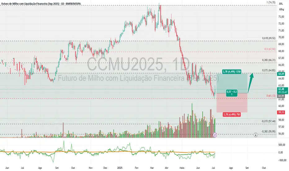 CMMU25 caiu forte e em plena colheita, ensaia fazer um fundo na região do 61,00