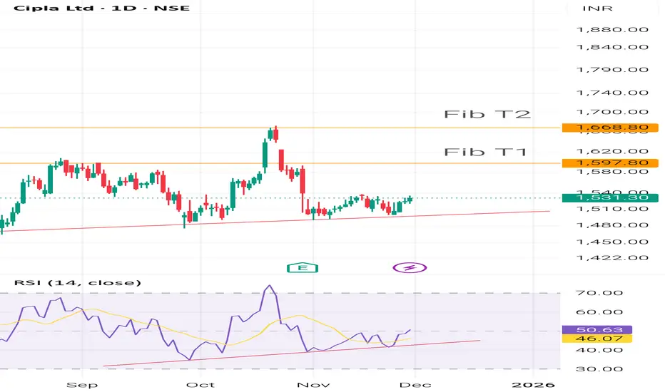 1. Stock is showing Uptrend with Higher lows and has taken support on trend line.