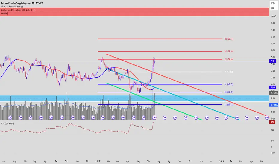 Sicuramente viste le tensioni in medio oriente e l'allargamento del conflitto che adesso include anche gli USA il prezzo del petrolio potrebbe aprire in rialzo ma di quanto? MA soprattutto a quanto potrebbe arrivare. A livello tecnico i punti di riferimento pivot il prezzo a mio modesto parere potrebbe aprire in gap up tra R1 ed R3, in seguito potrebbe portarsi in settimana fino ad R3.