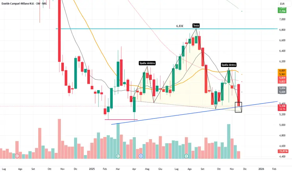 Attenzione perchè su grafico mensile il doppio massimo ha un target in zona 4€ e l'attivazione del testa spalle appena indicato potrebbe portare alla nuova discesa con rottura del precedente minimo