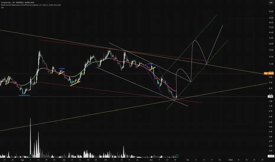 Nello stesso giorno del report di NVIDIA, anche Cerence (CRNC) rilascia i suoi numeri – e guarda caso il grafico si presenta in una configurazione tecnica estremamente interessante: un pattern dentro un pattern dentro un pattern.