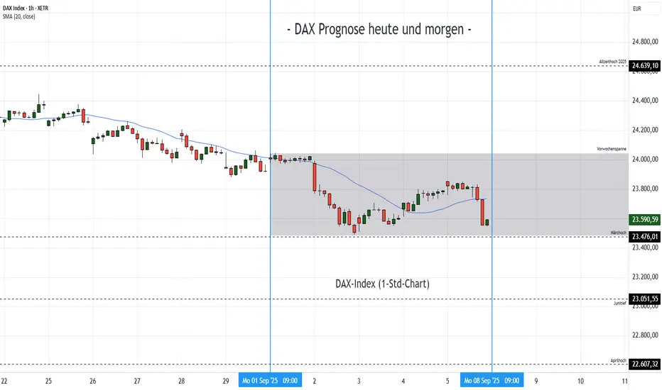 Erwartete Tagesspanne: 23.280 bis 23.570 alternativ 23.520 bis 23.680