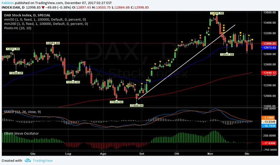 last price 12998,85/ -0,38%/ Forza1 = + - (LONG da 12297,72) del 4/8/2017 ad oggi 5,7%/Forza2 = + -/Last Cycle SHORT 9-11-2017 da 13182,56 Giorni 20 S/Ad oggi = GAIN 1,41%/ StcForza2 = negat. / Hma + / DMI DOWN /