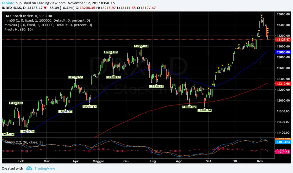 last price 13127,47/ -0,42%/ Forza1 = + - (LONG da 12154,72) del 3/8/2017 ad oggi 8%/Forza2 = + +/LastCycle Inver.Short 13127,47 10-11-2017 Giorni 1 I/ StcForza2 = negat.
