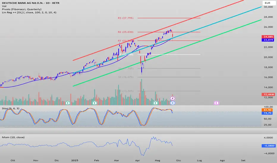 Nonostante la brutta chiusura di oggi il titolo rimane ancora orientato a rialzo, non entrerei a questi prezzi, ne senza un segnale di ripresa del trend. Titolo da inserire in watchlist per eventuali entrate future. Il livello di 20.50 potrebbe essere decisamente più appetibile per un'entrata long. Nelle azioni inoltre oltre ai livelli puramente tecnici c'è da valutare anche i fondamentarli per capire in che situazione economico-finanziaria si trova, soprattutto per trade di medio lungo termine.