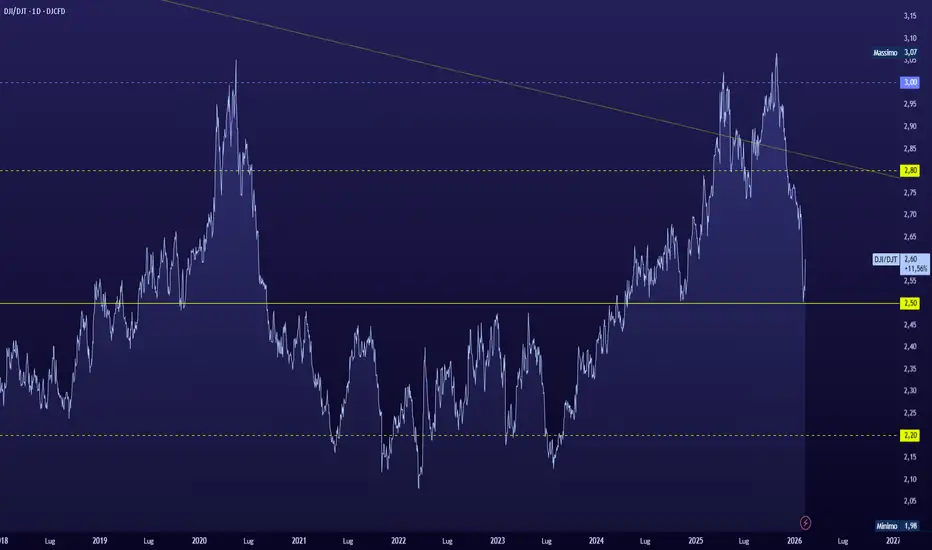 📉 DJI/DJT Ratio — 6M Focus: Equilibrio Ciclico o Nuovo Disallineamento?
