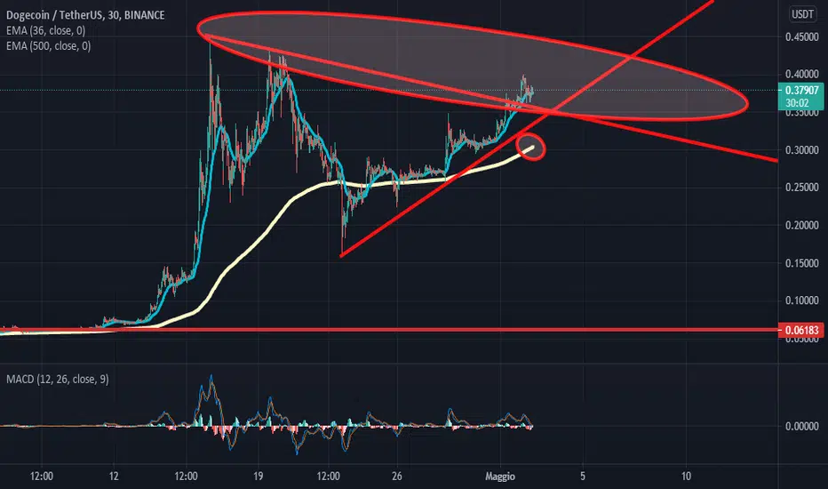 dogecoin ha da poco rotto il suo triangolo tecnico sul grafico 30 minuti, ora si vedrà la sua direzione che a questo punto è sempre più rialzista...
